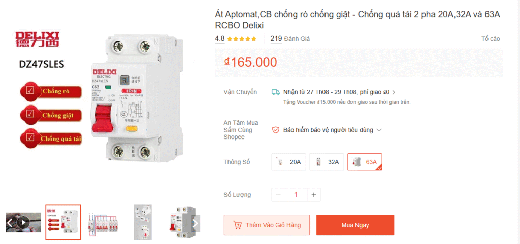 Link mua sản phẩm: Aptomat RCBO Delixi