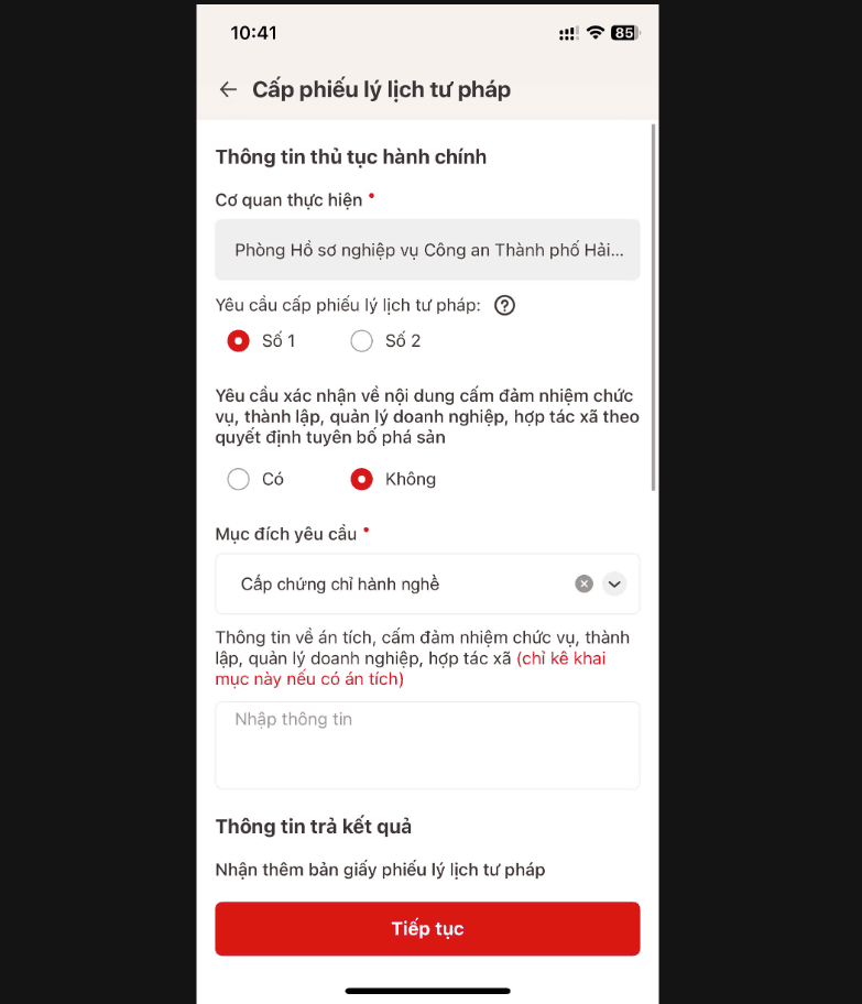 Bước 6: Nhập đầy đủ thông tin cấp phiếu lý lịch tư pháp